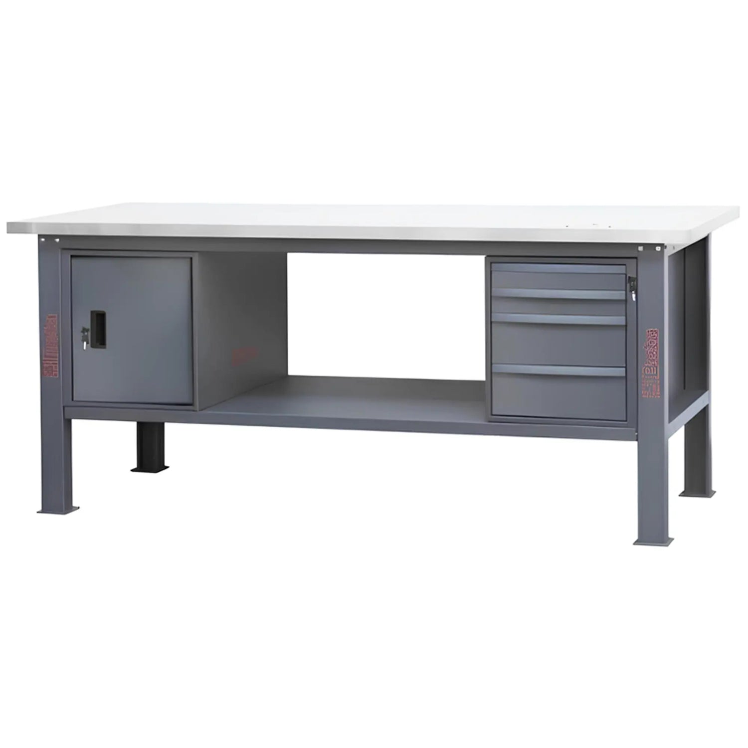 El Beta El C58BC-X2,1 4CA está diseñado para crear una estación de trabajo completa y funcional, con una superficie de MDF revestida de acero inoxidable, 4 cajones con guías telescópicas con rodamientos de bolas y un armario con puerta. Gracias a su estructura de acero y a su capacidad de carga de hasta 800 kg, es ideal para trabajos pesados y uso intensivo.