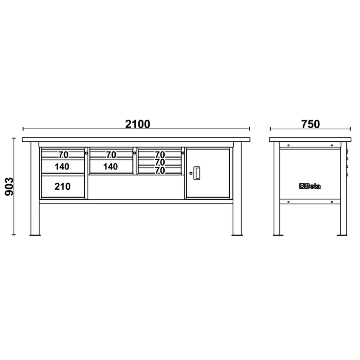 El Beta El C58BC-X2,1 4CA está diseñado para crear una estación de trabajo completa y funcional, con una superficie de MDF revestida de acero inoxidable, 4 cajones con guías telescópicas con rodamientos de bolas y un armario con puerta. Gracias a su estructura de acero y a su capacidad de carga de hasta 800 kg, es ideal para trabajos pesados y uso intensivo.