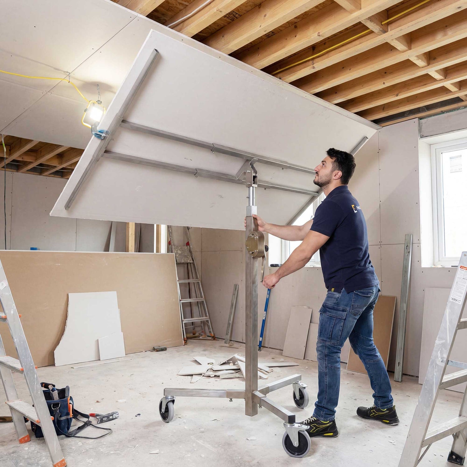 • Fácil de usarDiseñado para un uso intuitivo, permite levantar y fijar paneles de yeso de forma rápida y segura, incluso para un solo operador.