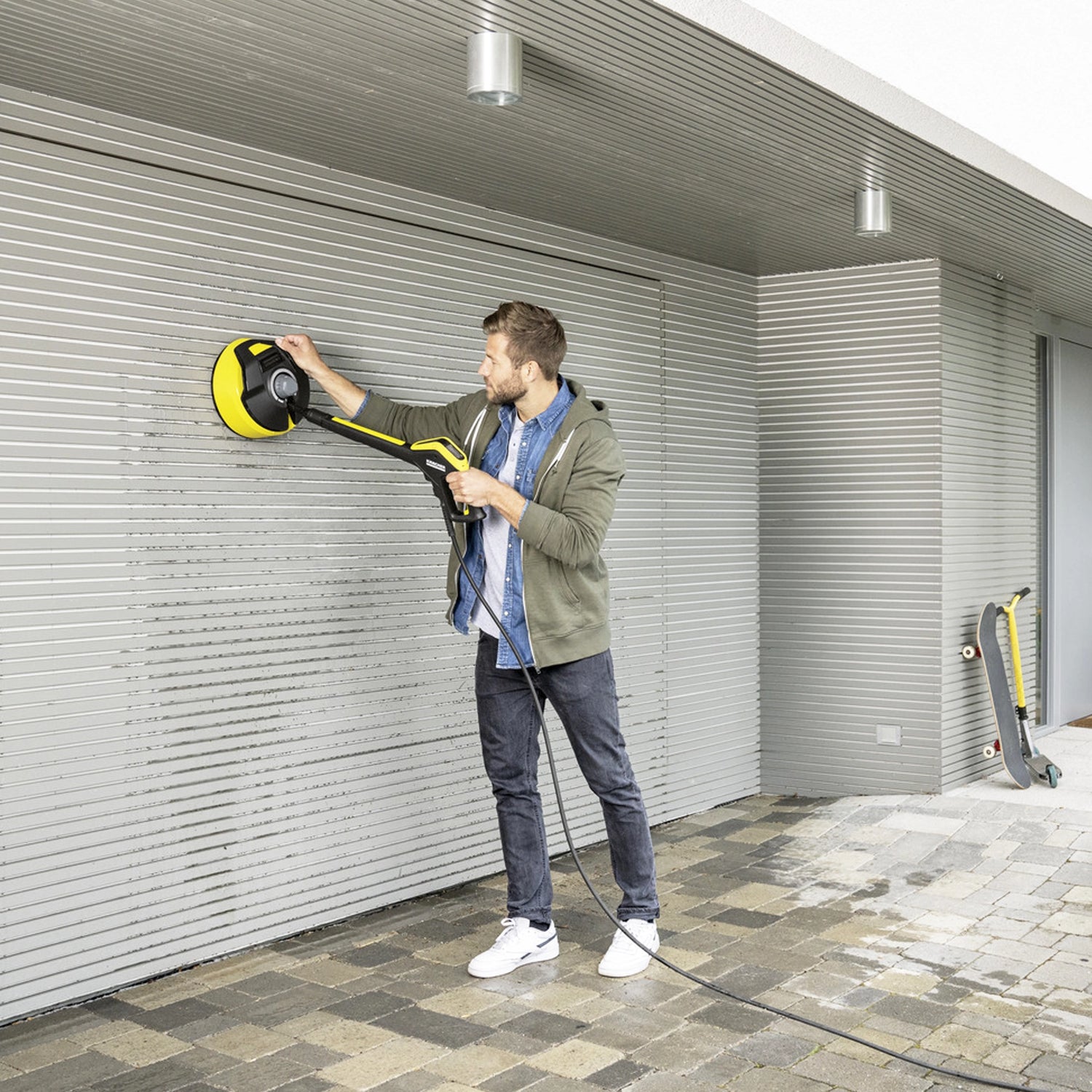 • Eficiencia en grandes superficies:Gracias a su diseño innovador, el limpiador de superficies T 5 reduce el tiempo de limpieza a la mitad en comparación con las boquillas tradicionales. Es ideal para grandes áreas exteriores como patios, caminos de acceso y terrazas.