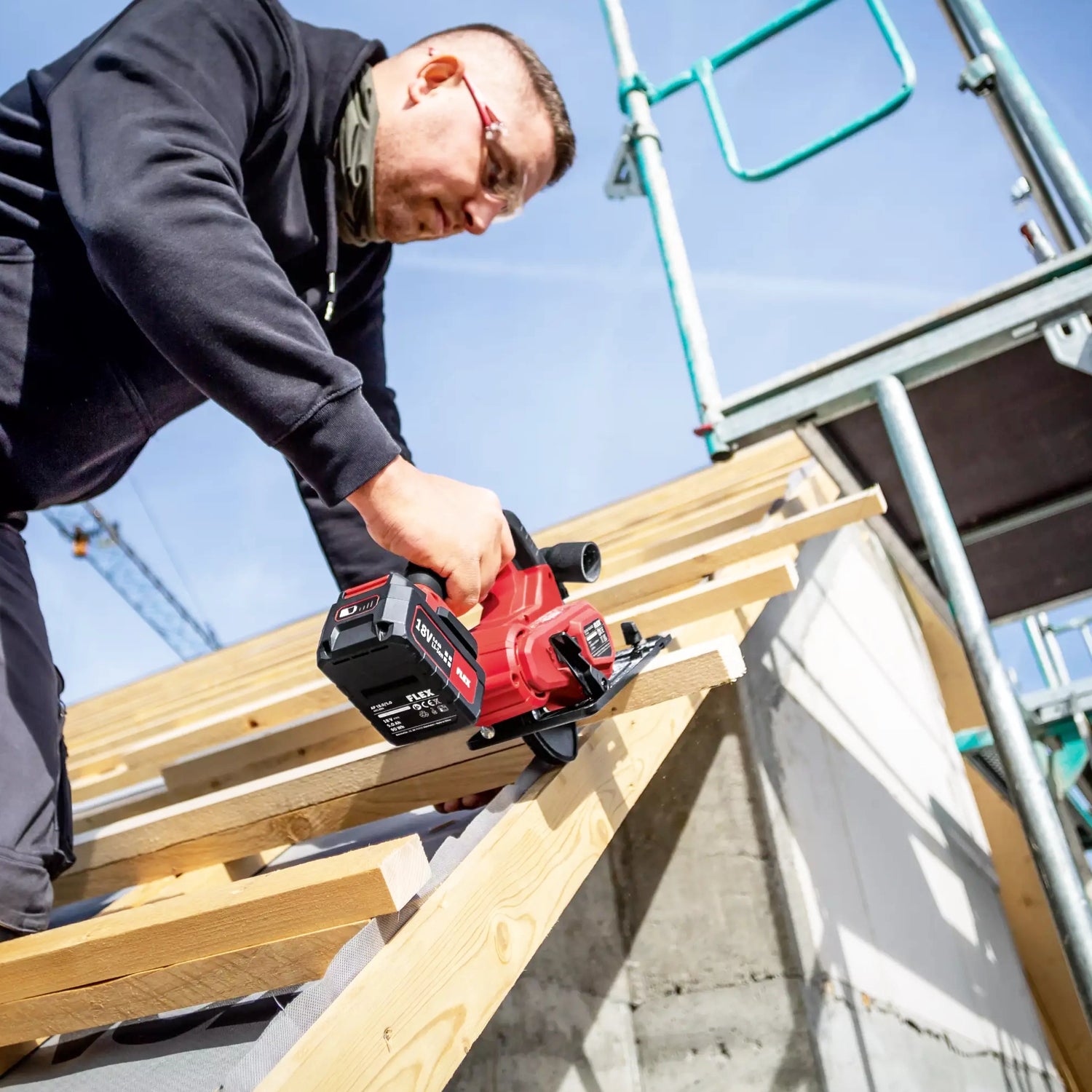 Sierra circular Flex CS 45 18.0-EC C 18V, gracias al diseño especial, la sierra está perfectamente equilibrada para trabajos a mano alzada.