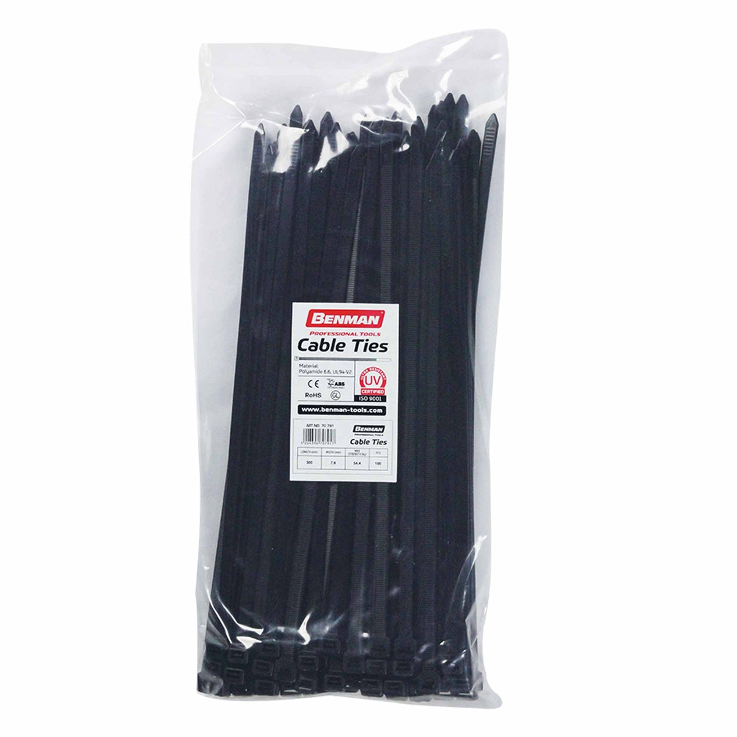 Correas de ajuste negras Benman 100 piezas: resistencia y seguridad para tensar cables y tuberías