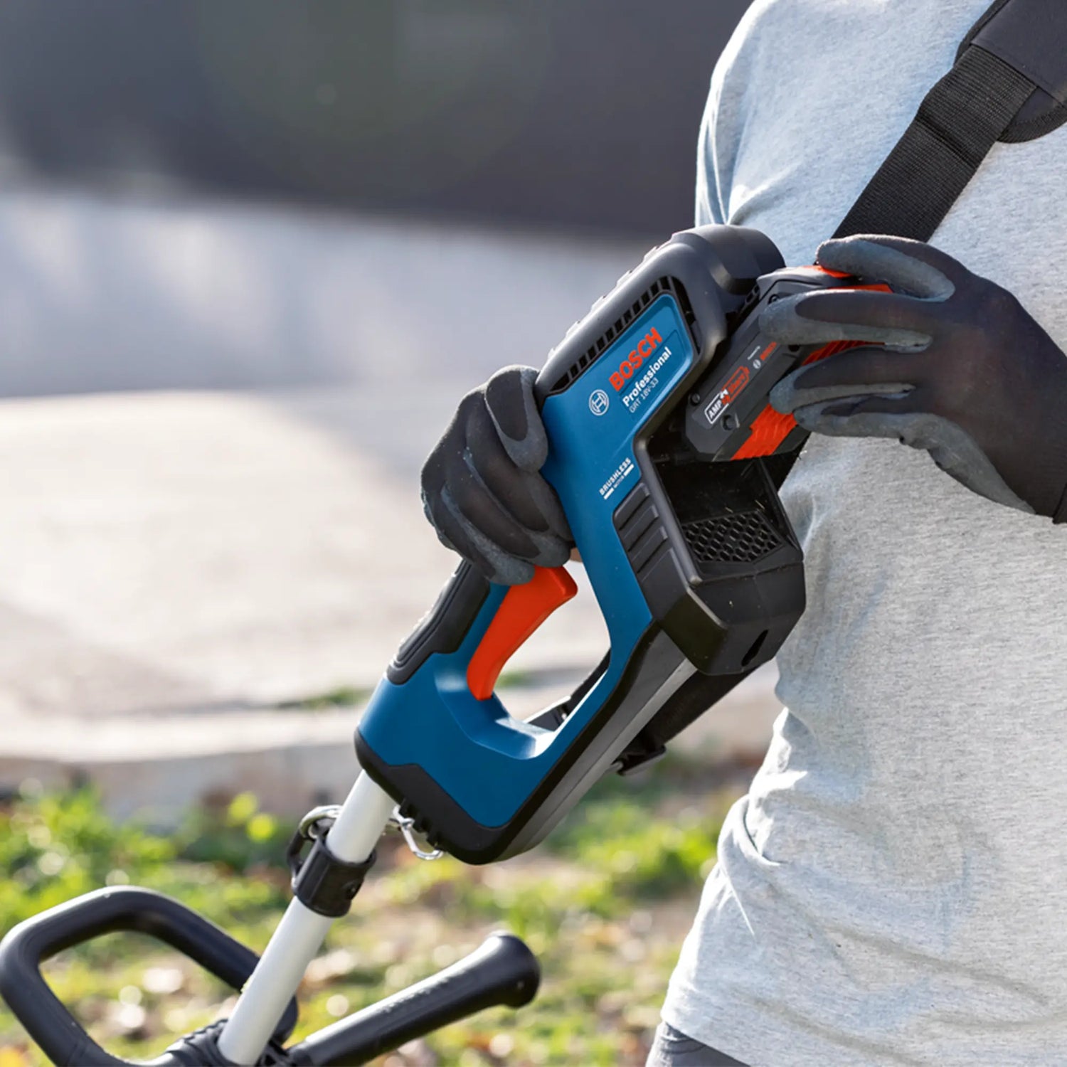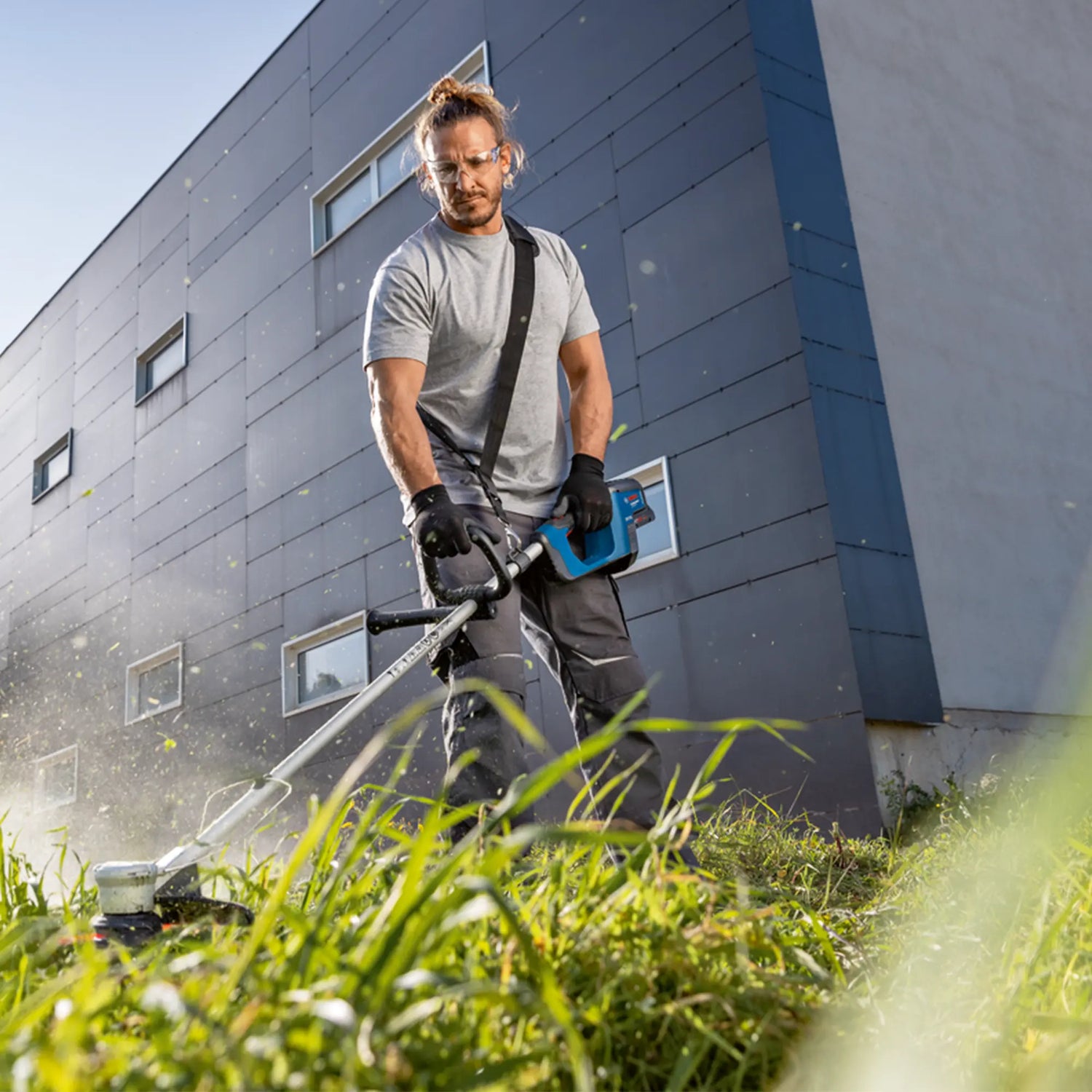 El recortadora a batería Bosch GRT 18V-33 Profesional está diseñado para ofrecer un potencia constante, autonomía extendida y un excelente manejo incluso en las situaciones de corte más exigentes. Equipado con un motor sin escobillas alojado en un carcasa de aluminio Resistente, esta recortadora es perfecta para recortar hierba alta, bordes y zonas con malas hierbas persistentes.