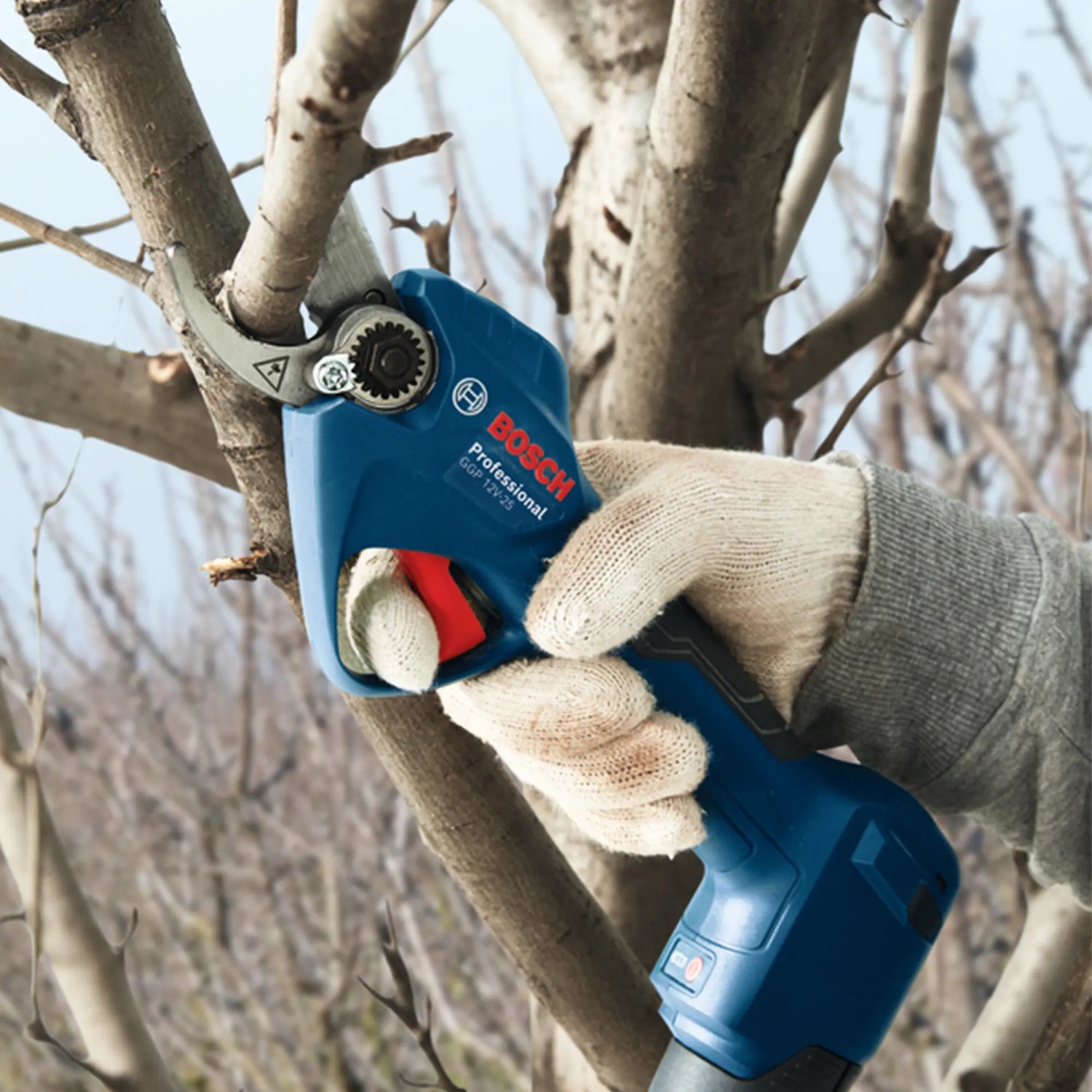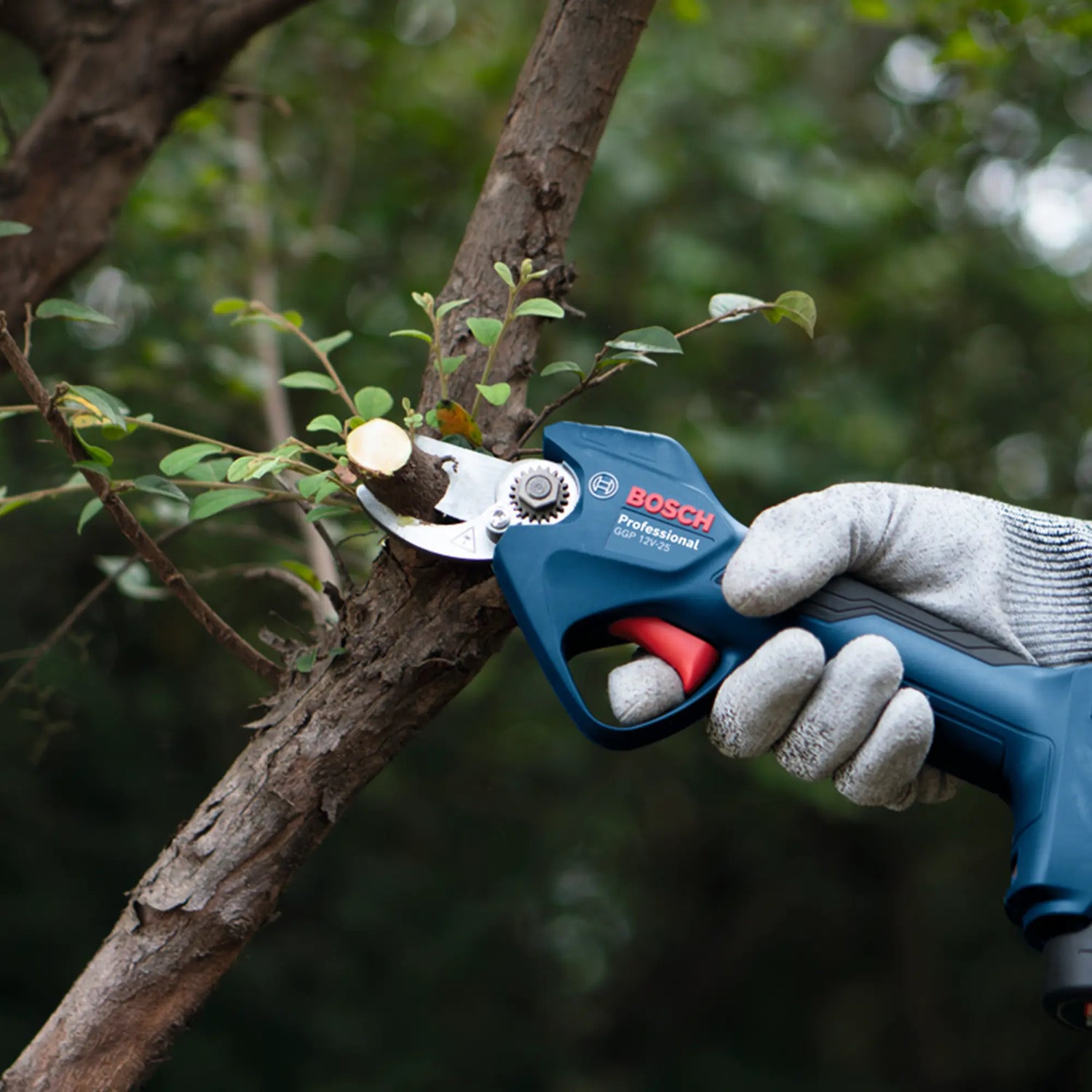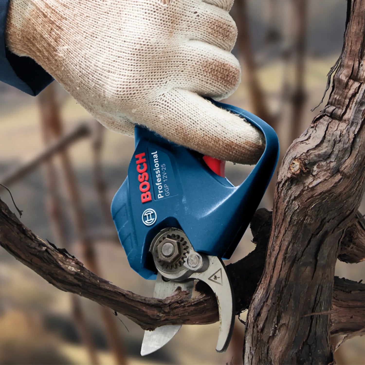 Tijeras de podar Bosch GGP 12V-25 La tecnología aplicada a esta máquina permite alcanzar un rendimiento extremadamente alto; el uso de cuchillas de acero de alta calidad permite cortes rápidos y precisos para salvaguardar la salud de la planta.