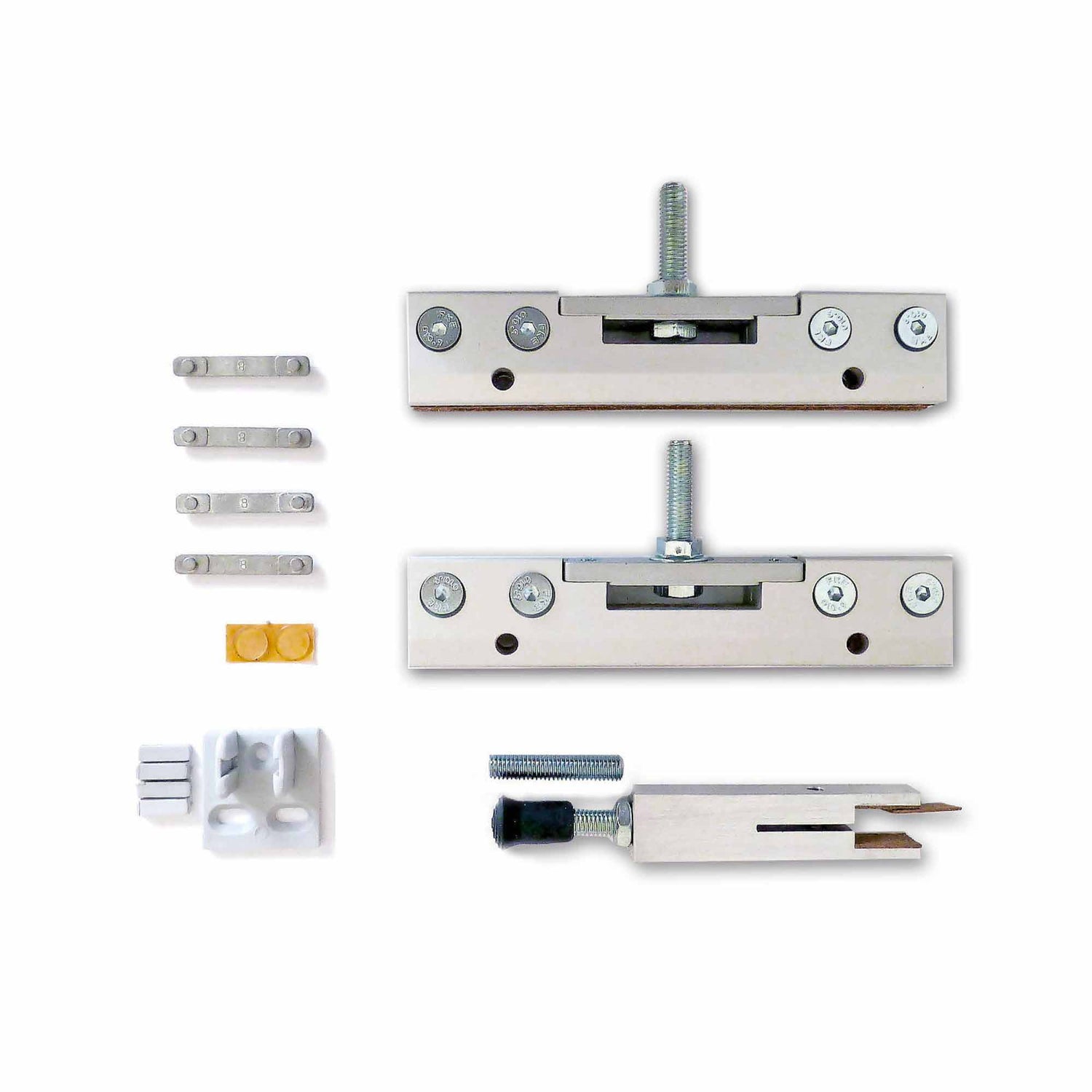 El alicates de presión Con altísima estanqueidad incluida en el kit no requieren ninguna perforación del cristal, garantizando una instalación sencilla y limpia. Son compatibles con láminas de vidrio de espesor variable (8 o 10 mm), ofreciendo total flexibilidad para cada necesidad. Además, el kit incluye un espaciador trasero que permite un ajuste preciso del saliente de la puerta, haciendo la instalación personalizable y a medida.