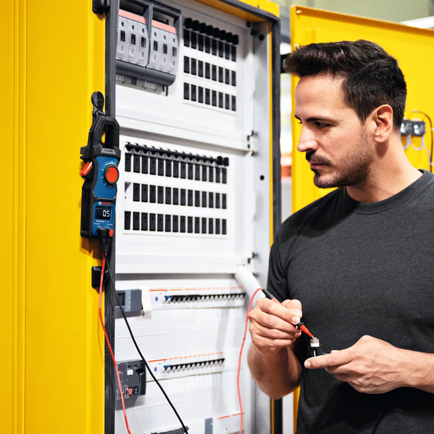 El Multímetro digital Bosch GDM 600-15 Es la herramienta ideal para electricistas, instaladores y técnicos que requieren Precisión, robustez y practicidad En cualquier condición de trabajo. Diseñado para garantizar la fiabilidad incluso en las obras más exigentes, ofrece mediciones rápidas, claras y precisas gracias a su pantalla LCD invertida y a su tecnología. Verdadero valor eficaz, esencial para analizar correctamente señales eléctricas complejas.
