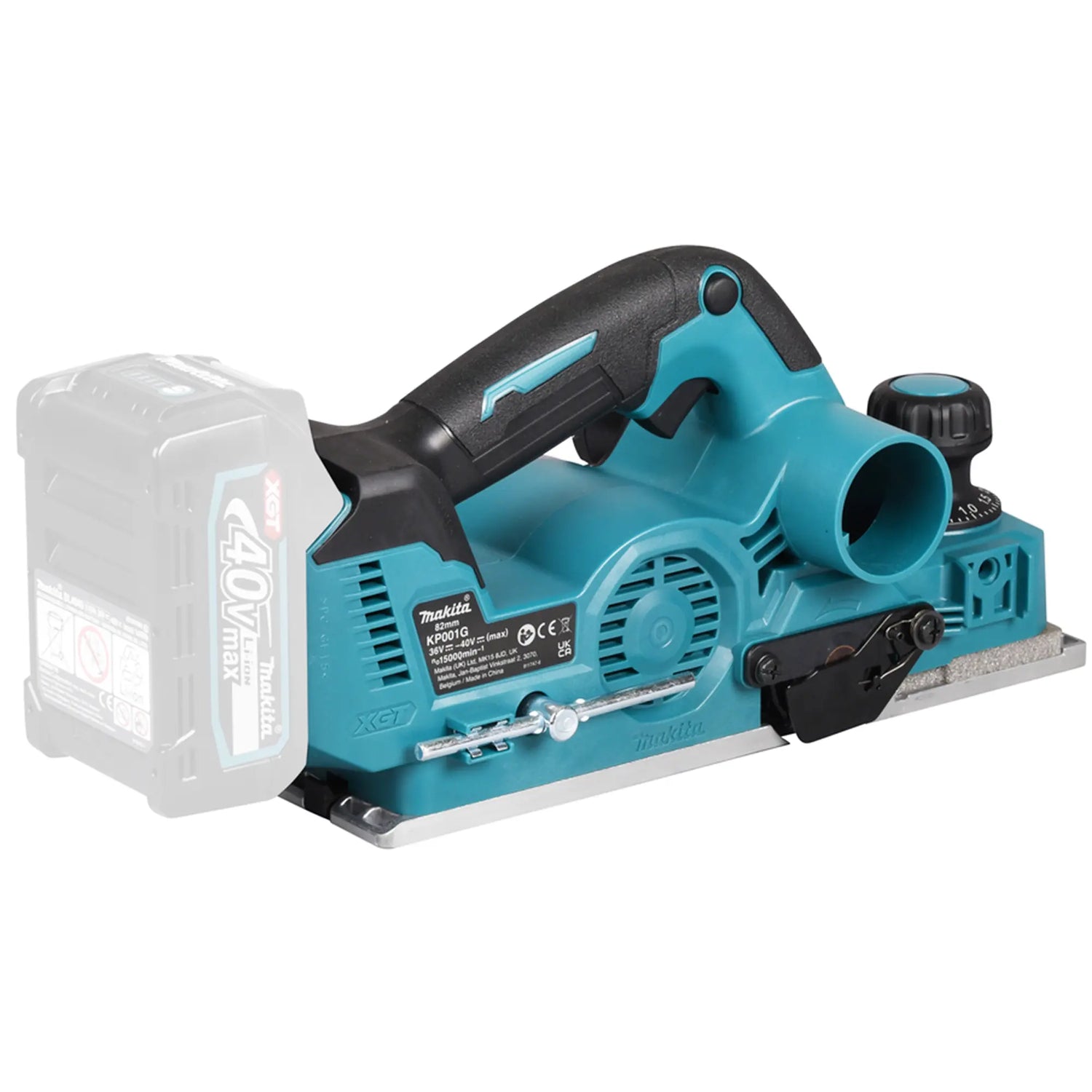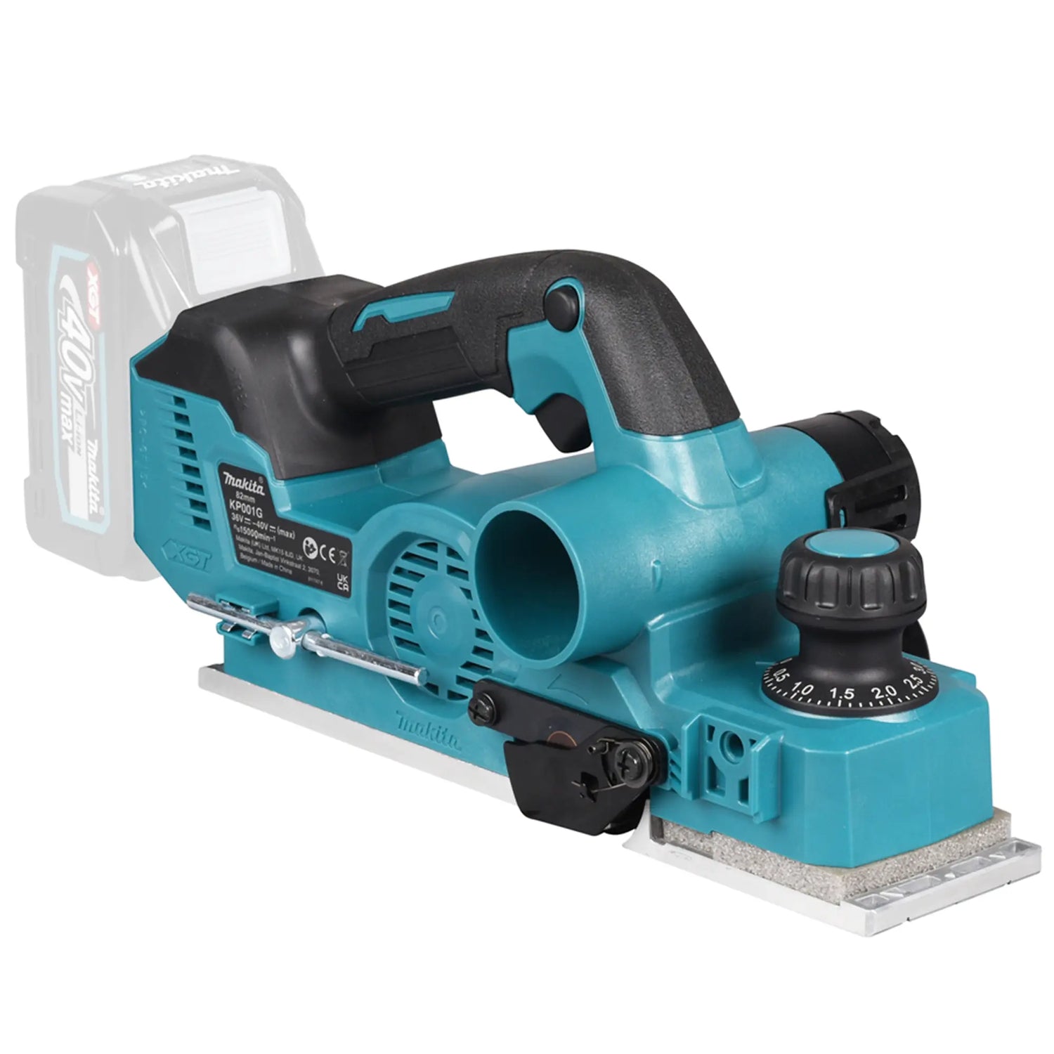 Avión Makita KP001GZ02 40 V a Alto rendimiento, ideal para cepillar vigas y paneles de madera.
