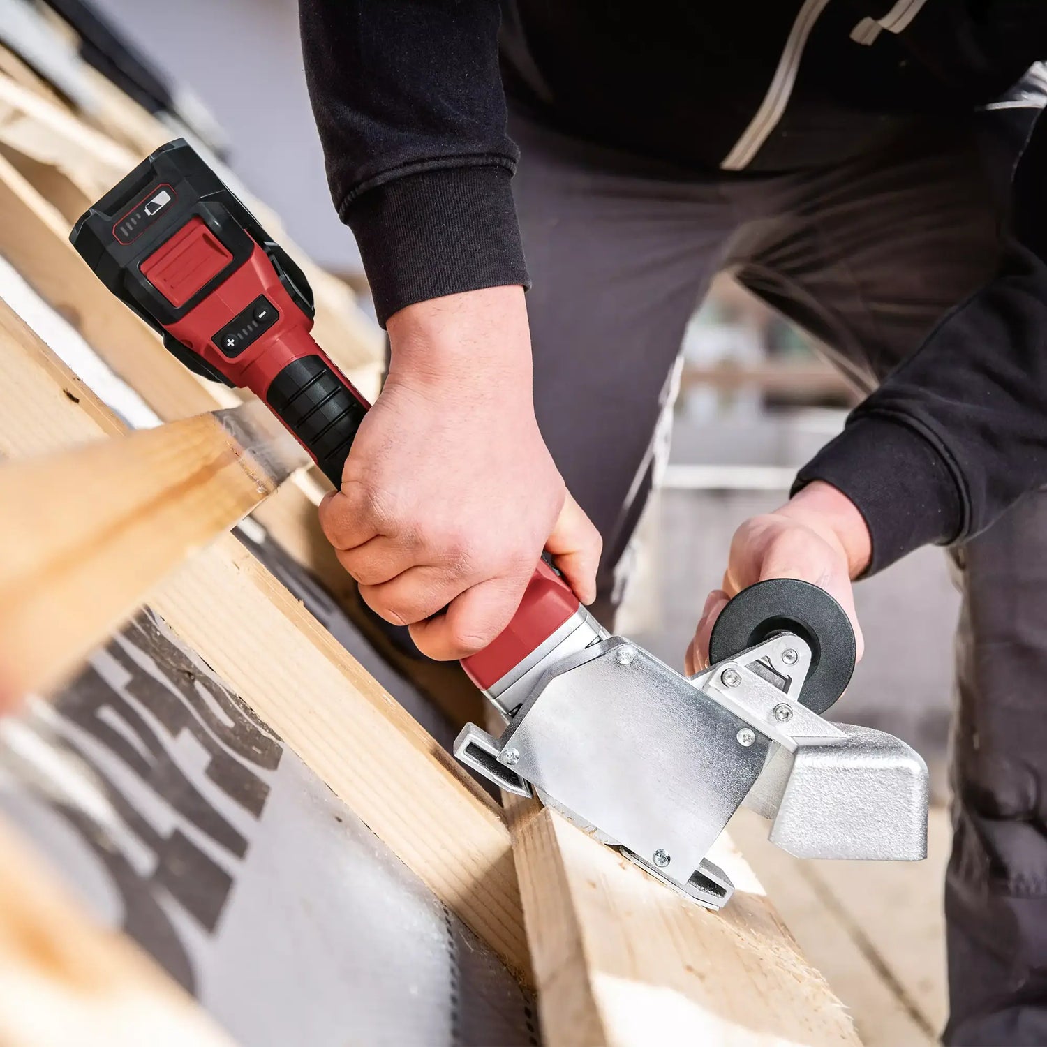 Este kit combina una amoladora angular y un taladro de impacto para cortar metal, lijar, taladrar madera y acero, y atornillar con precisión en entornos profesionales e instalaciones técnicas.