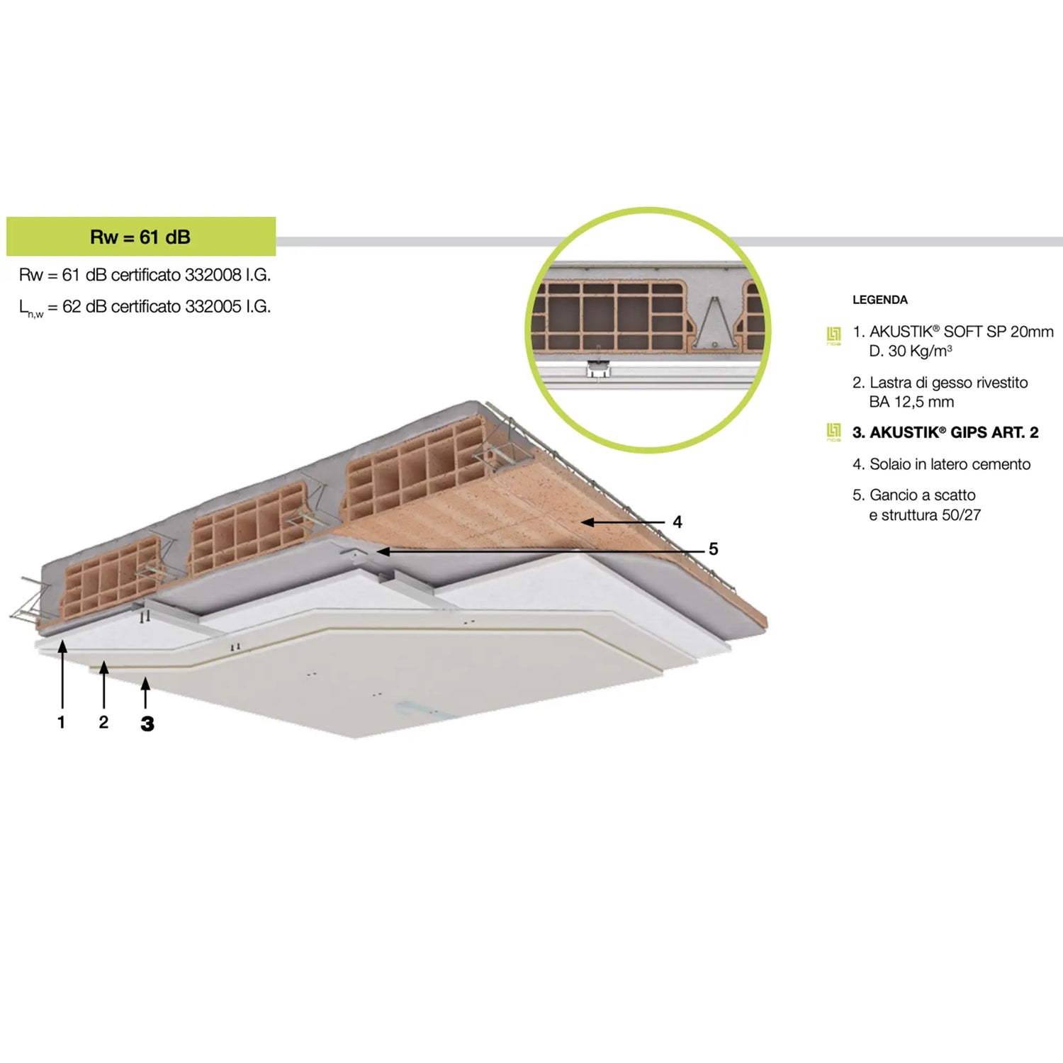 El panel acoplado Nda Akustik Gips Art2 Se vende en láminas de 120x200, acoplado con aislamiento acústico.