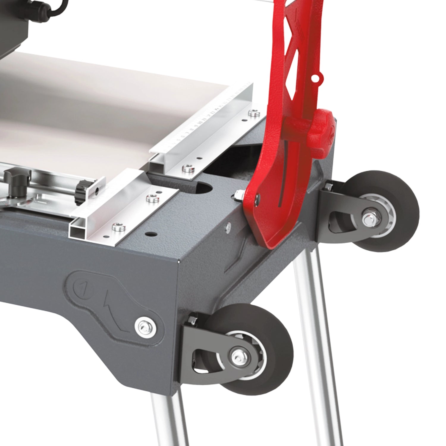 • Facilidad de transporteLas patas plegables y las ruedas integradas hacen que la sierra sea extremadamente fácil de transportar y manipular.