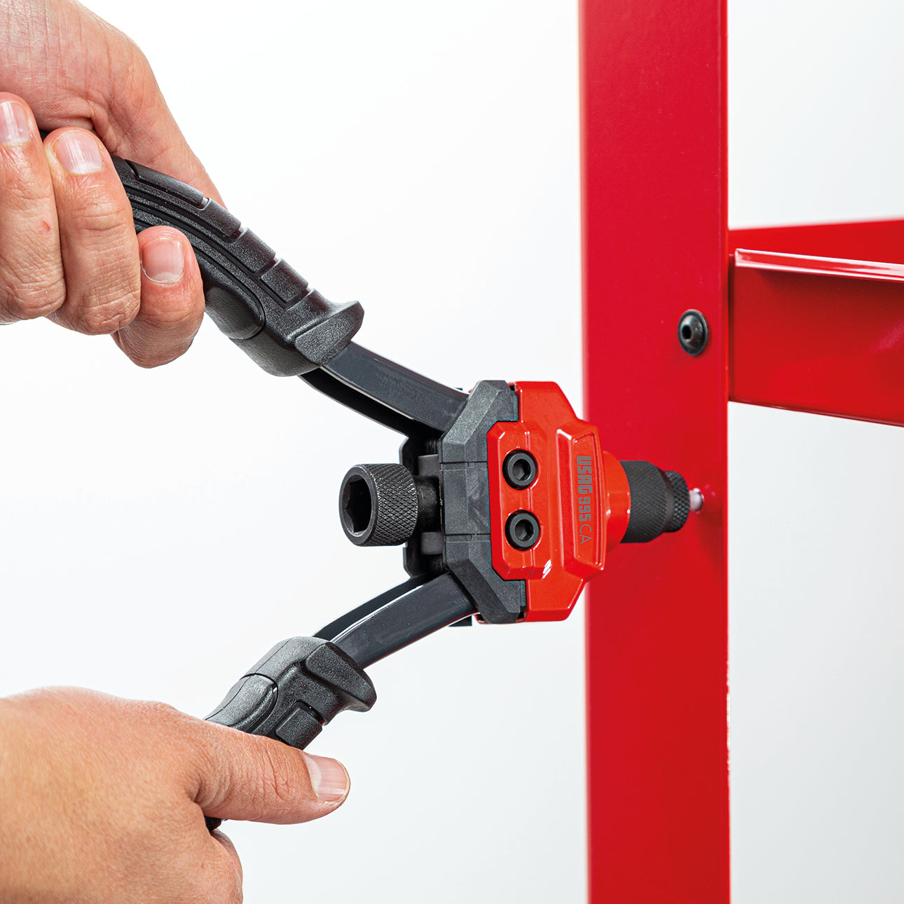 Allá Remachador Usag 995 CA Es la herramienta ideal para insertar insertos roscados en diversos materiales, con un diseño compacto y un sistema de palanca interna que reduce significativamente el esfuerzo del operador durante su uso. Perfecto para quienes buscan un equipo profesional, preciso y fácil de usar.
