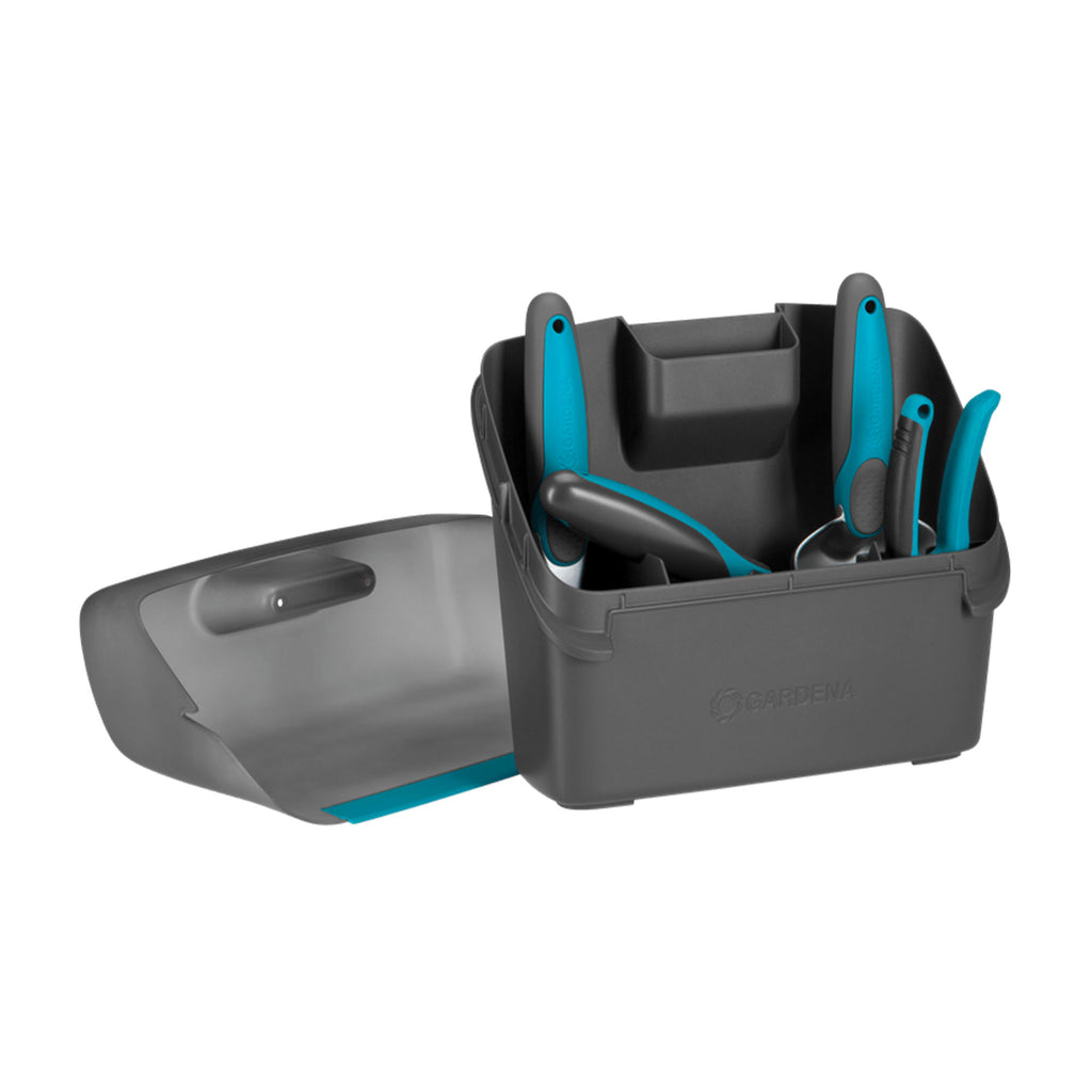 The Balcony Set Gardena is the ideal solution for those who love gardening even in smaller spaces such as balconies and terraces. This practical set contains all the essential tools for planting, loosening soil, cutting flowers and herbs, and sweeping away excess soil. Thanks to the compact design, all the tools fit into the large plastic container, whose lid can also be used as a shovel.