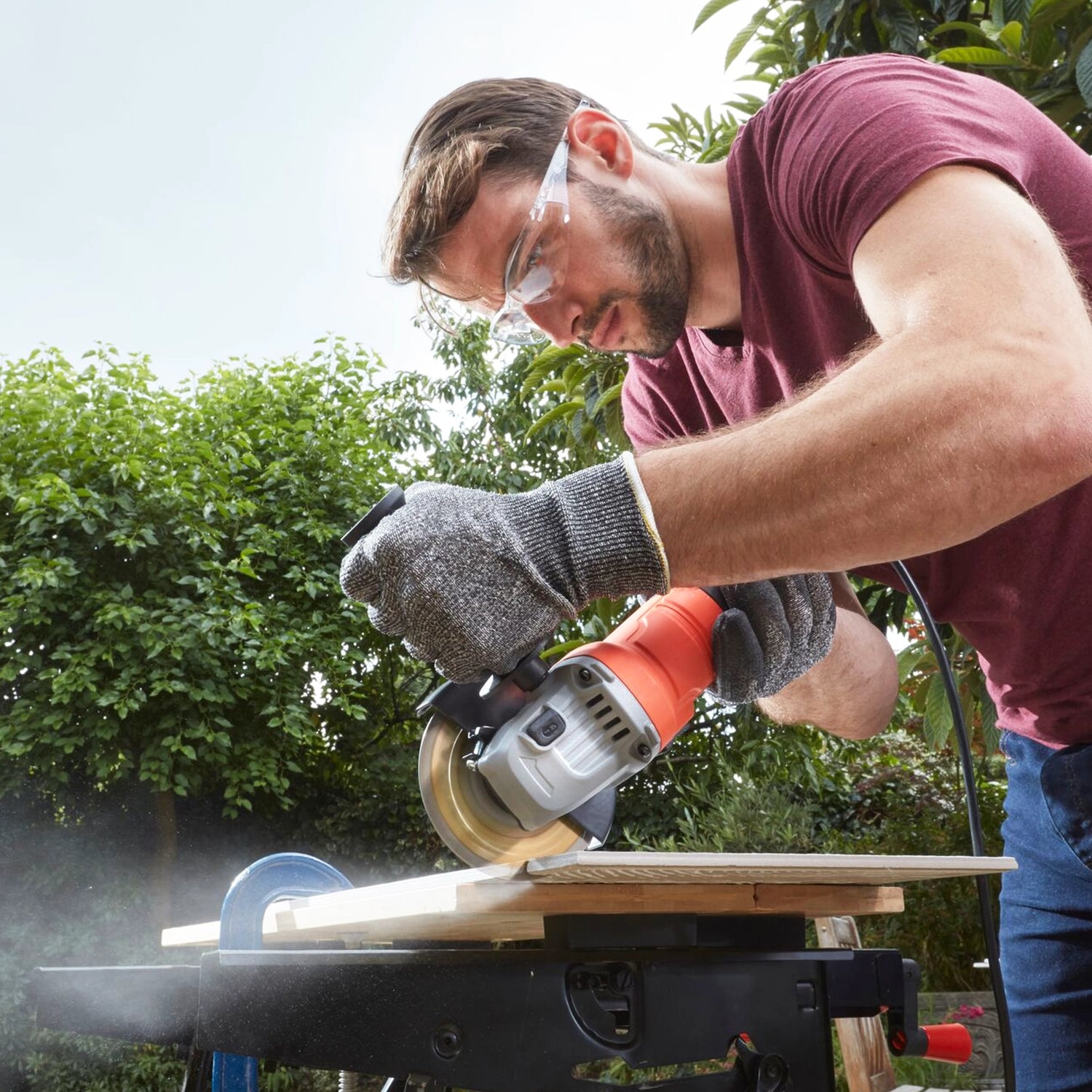 There Angle Grinder Black+Decker BEG010-QS 710W It is the perfect ally for cutting and sanding jobs on metal pipes, stone slabs, ceramic floors, and even for removing rust and paint. Its compact and lightweight design ensures a comfortable grip, allowing you to work in tight spaces with ease. Thanks to the powerful 710W motor, it is able to tackle any project with efficiency and precision.