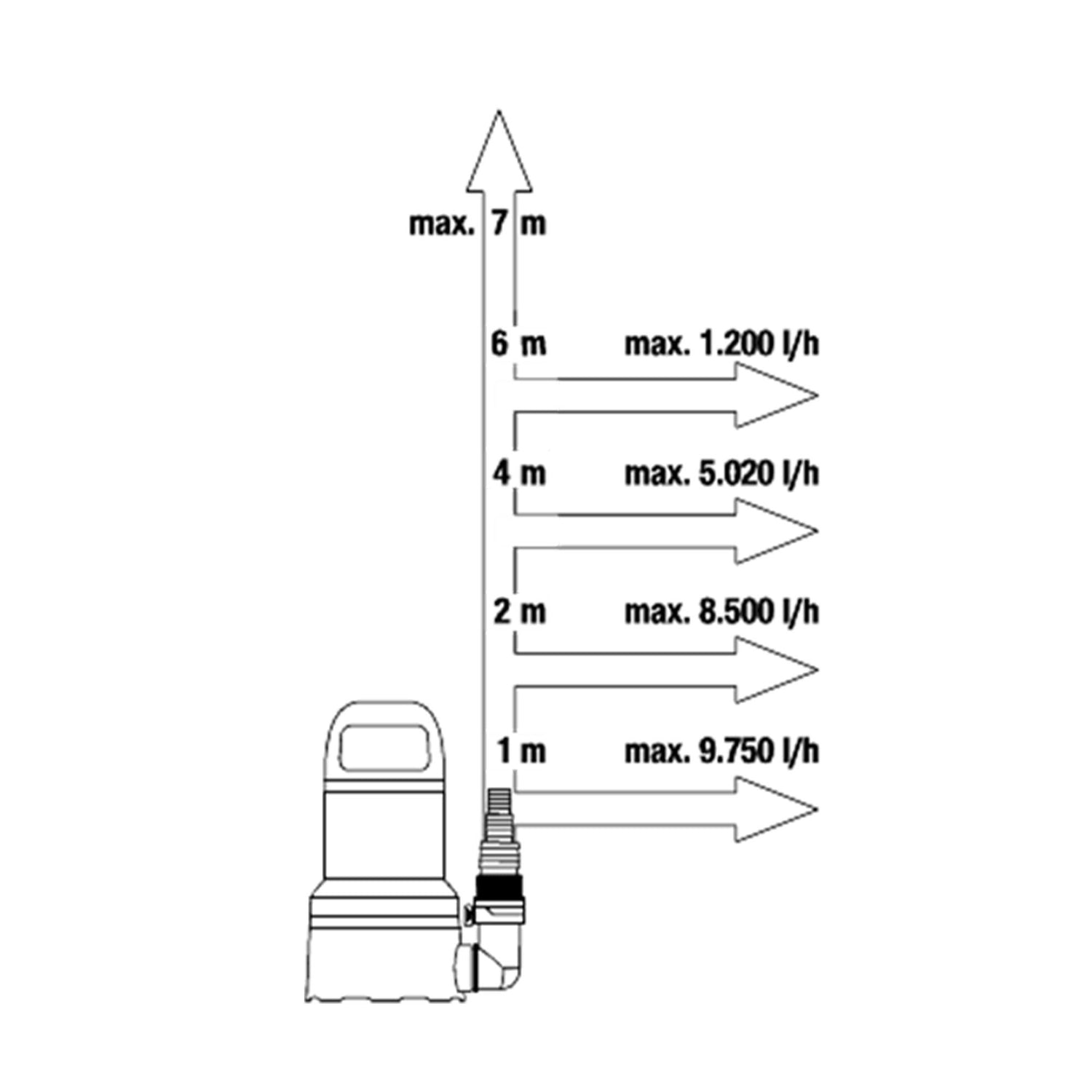 • Alta potencia y capacidad:Con un caudal máximo de 11.000 l/h y una altura de impulsión de 7 m, esta bomba es perfecta para vaciar sótanos, depósitos y pequeñas piscinas.