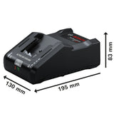 El Cargador de batería Bosch Galón 18V-160 Está diseñado para ofrecer una carga extremadamente rápida y eficiente para las baterías de 18 V de la línea. Bosch Profesional.