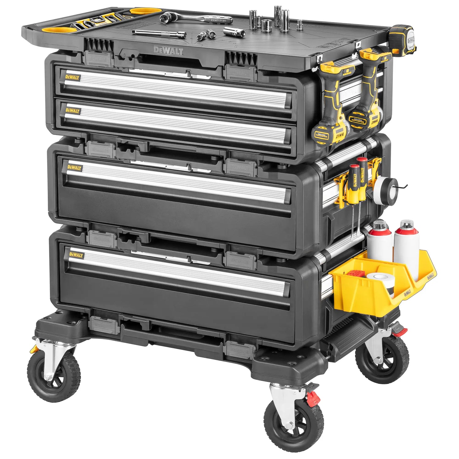 En Tienda Emmeti Encuentre soluciones profesionales y confiables. Carro Dewalt Sistema resistente 2.0 DXL Es un sistema de almacenamiento modular diseñado para organizar de forma eficiente herramientas y materiales de trabajo, ofreciendo la máxima versatilidad y robustez para la obra.