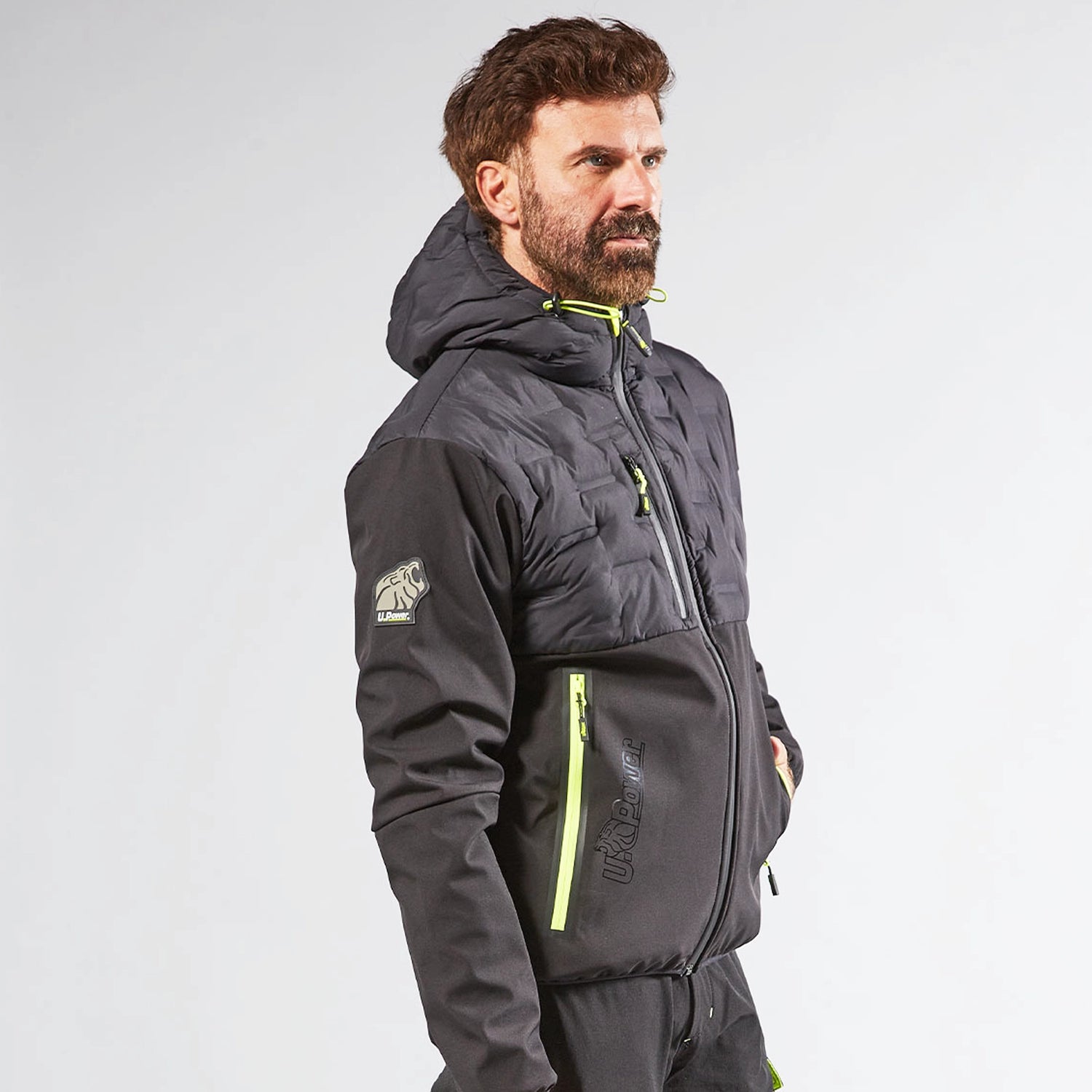 Allá Chaqueta de Spock U-Power Es un modelo híbrido, repelente al agua, transpirable y cortavientos.