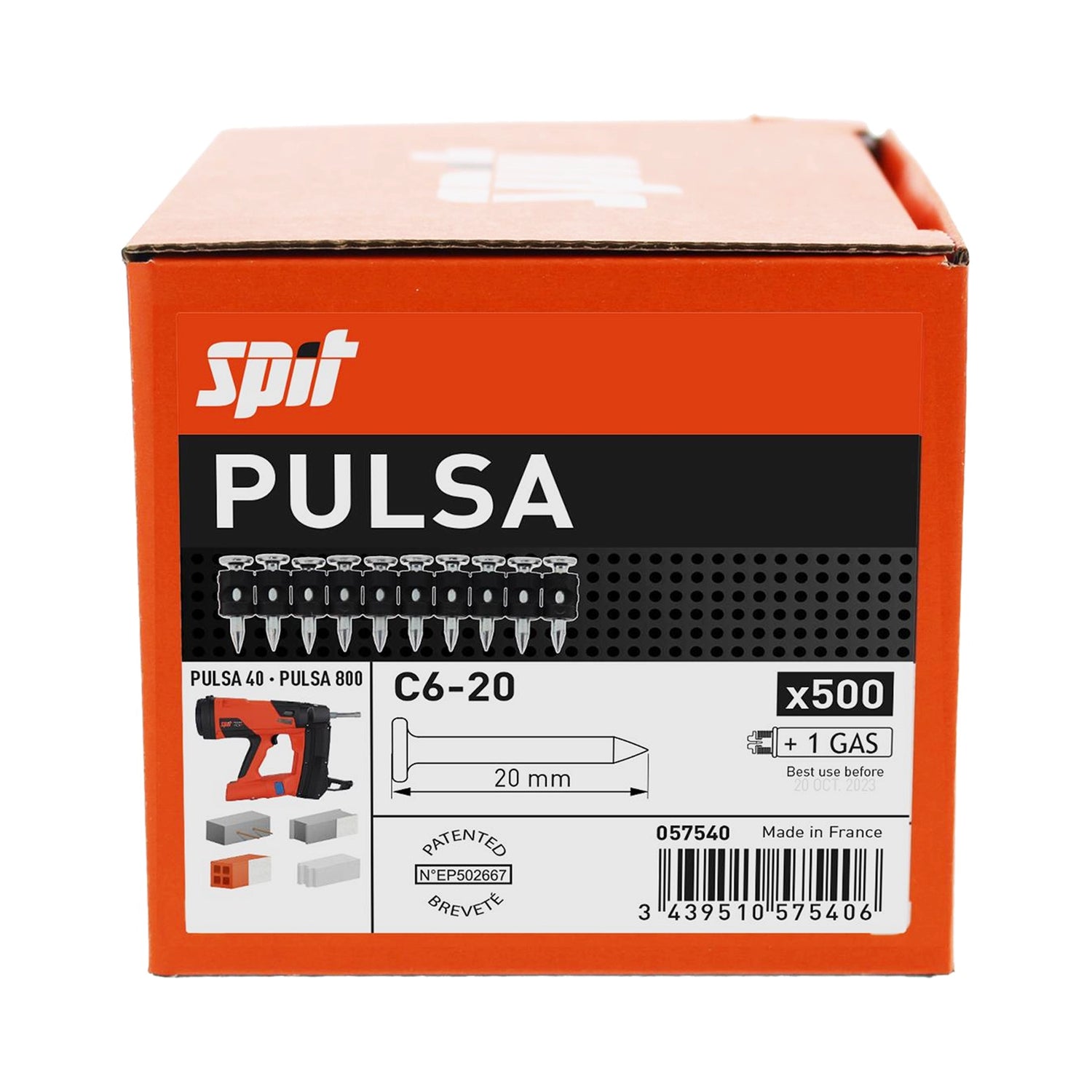 Clavo Spit C6 800P 500 piezas, para Pulsa 800P/E adecuado para fijaciones directas sobre hormigón, mampostería, piedra caliza y madera.
