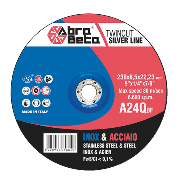 Disco de amolar Abra Beta A24Q, Se puede utilizar para desbarbar aceros, aceros inoxidables y fundiciones.