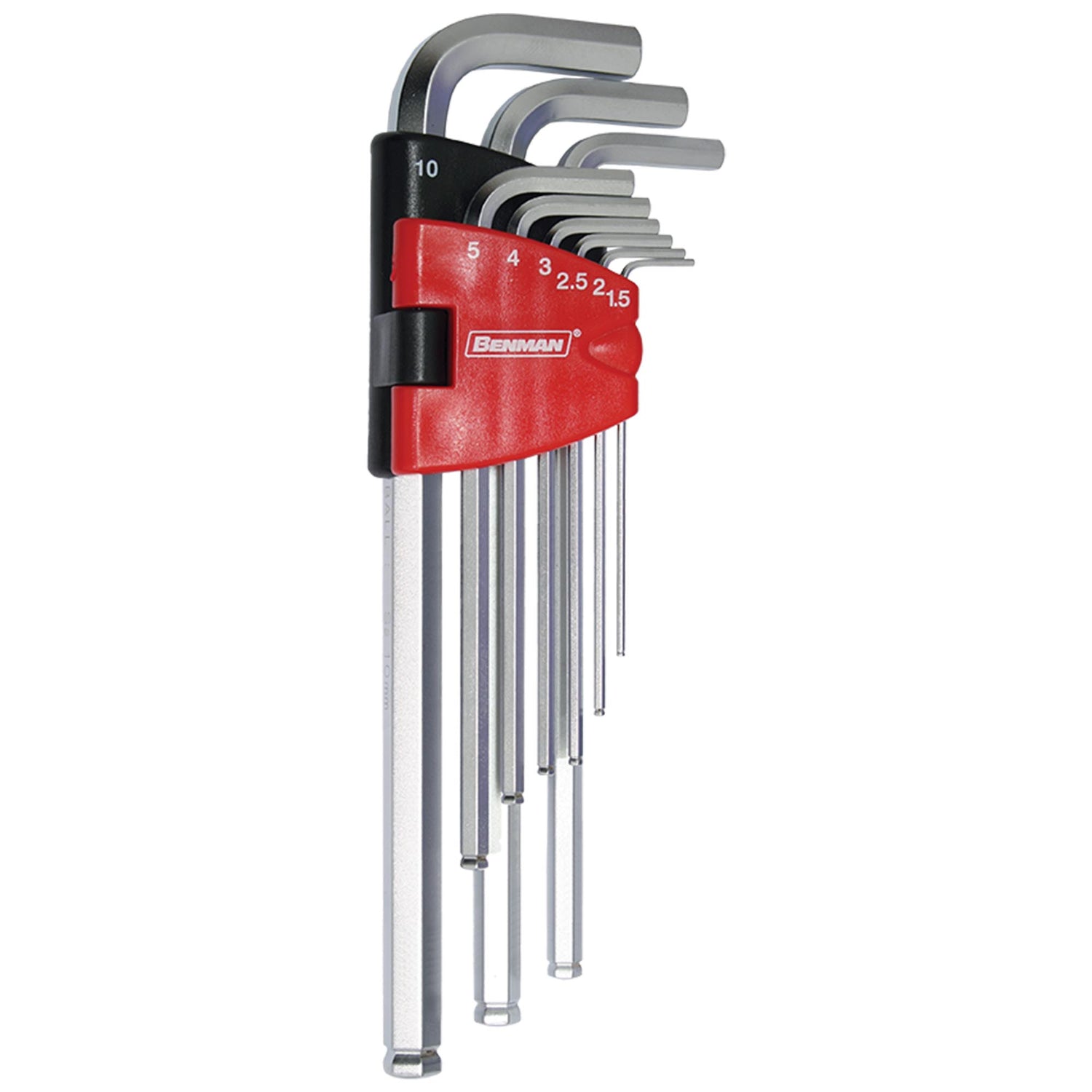 Juego de llaves hexagonales extra largas Benman Turball 9 piezas, con cabezal turbal patentado que combina un cabezal recto con un cabezal tipo turbal.