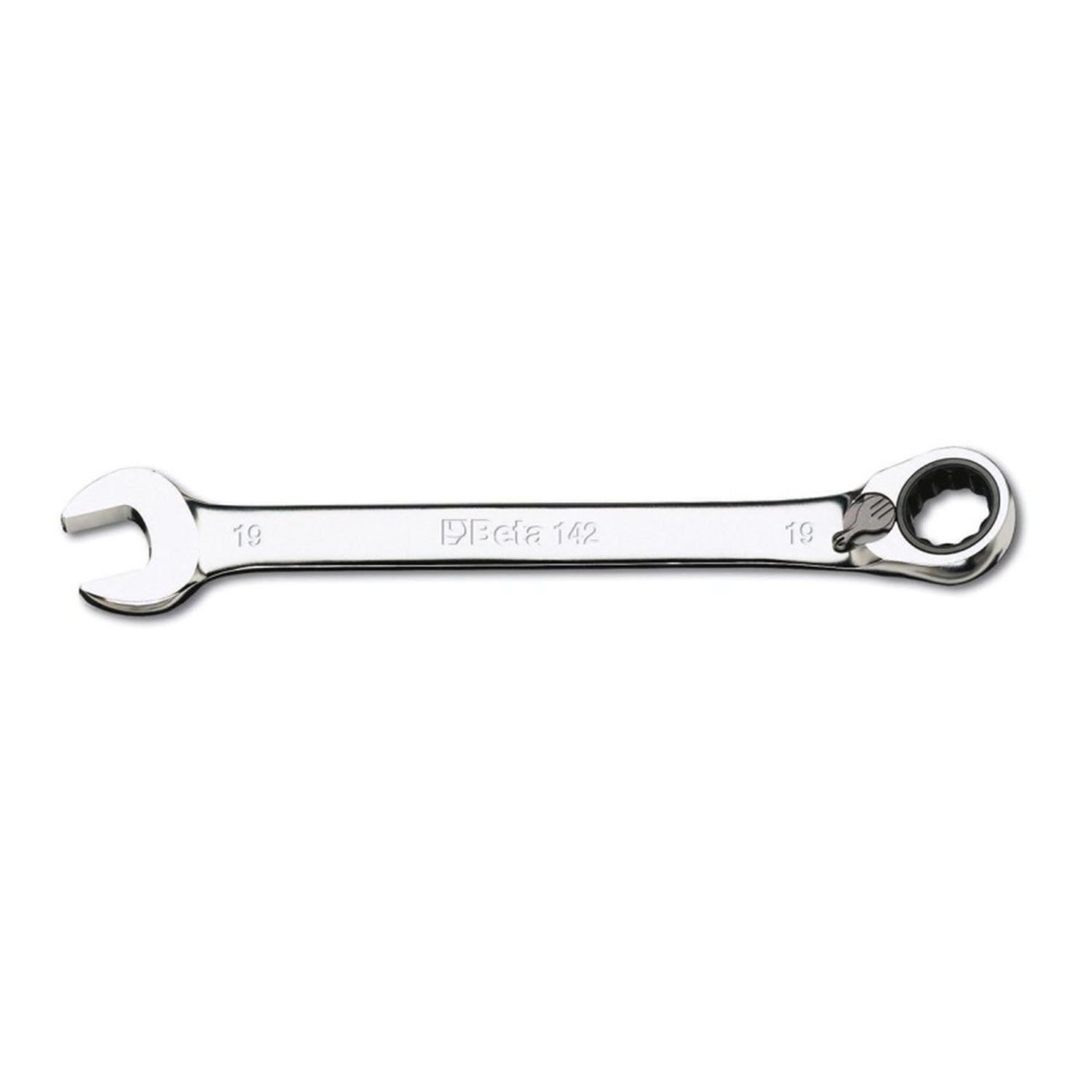 Llave combinada de trinquete Beta 142 Trinquete cromado reversible, horquilla curvada y poligonal, Ideal para realizar aprietes rápidos y precisos.