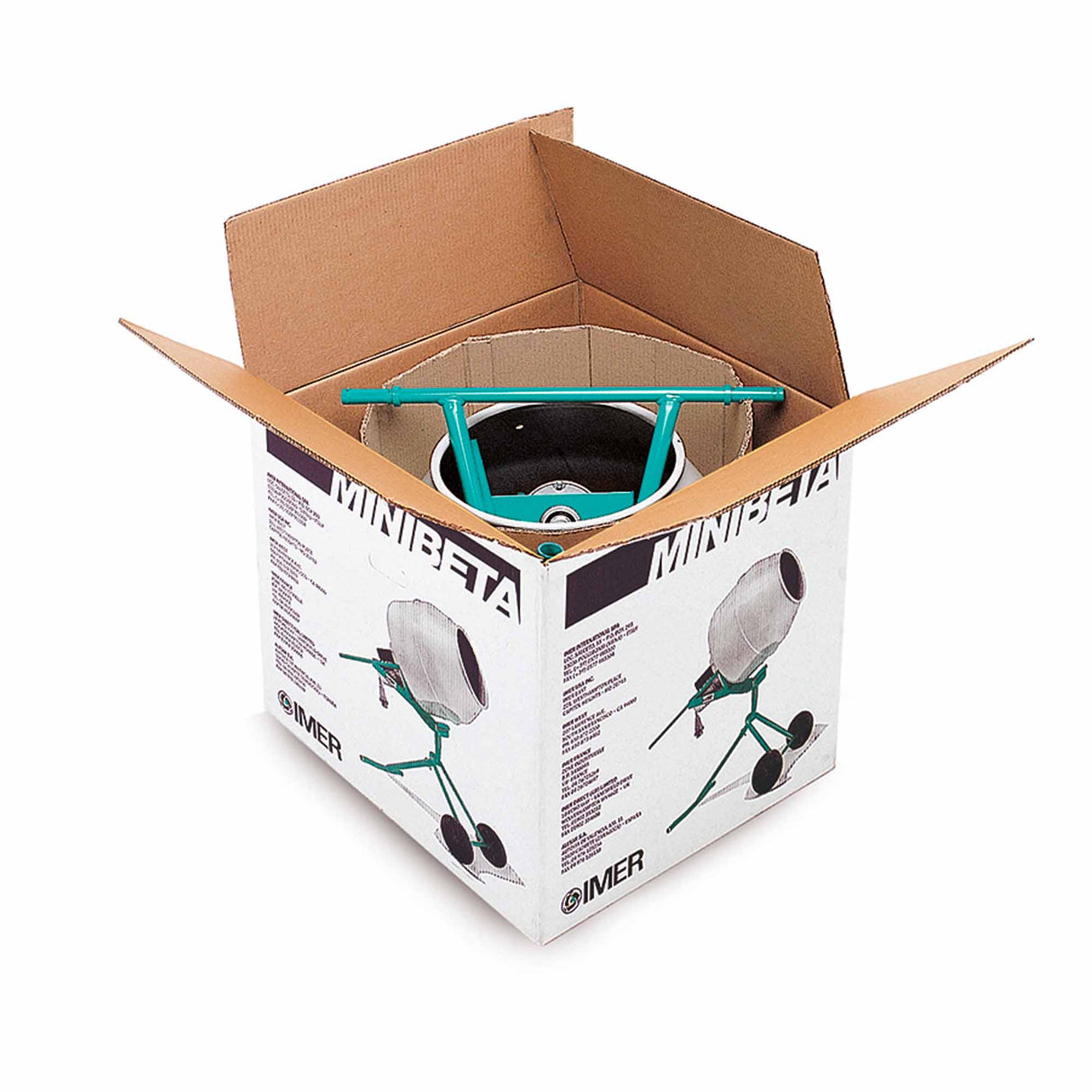 Allá Mezcladora de cemento Imer MiniBeta Viene con cuchillas mezcladoras de acero y embalado en una caja resistente para facilitar su transporte.