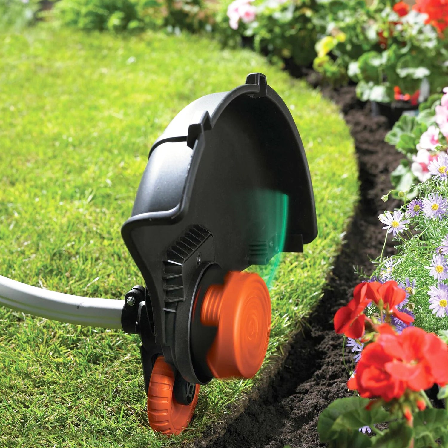 El Recortadora de bordes Black+Decker GL7033-QS 700 W con mango doble ajustable para un mejor equilibrio y control durante el trabajo. Rueda para función de canteado: mayor control y comodidad durante el uso.