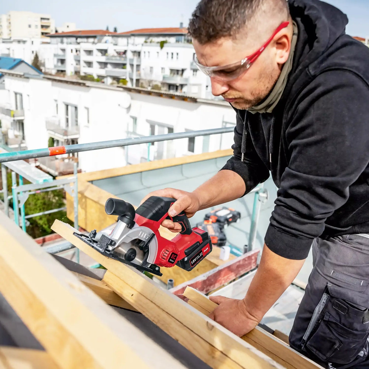 Allá Sierra circular Flex CS 45 18.0-EC C 18 V Está perfectamente equilibrado para trabajos a mano alzada, gracias a un diseño innovador que alinea el mango con la hoja, lo que permite una guía precisa en el punto de ruptura. Esta característica garantiza cortes rectos sin necesidad de guía externa, lo que la hace ideal para aplicaciones clásicas en la construcción y renovación de paneles de yeso. Ya sea que esté cortando paneles de yeso, fibrocemento o materiales de madera como tableros de partículas u OSB, esta sierra es perfecta para cualquier proyecto.