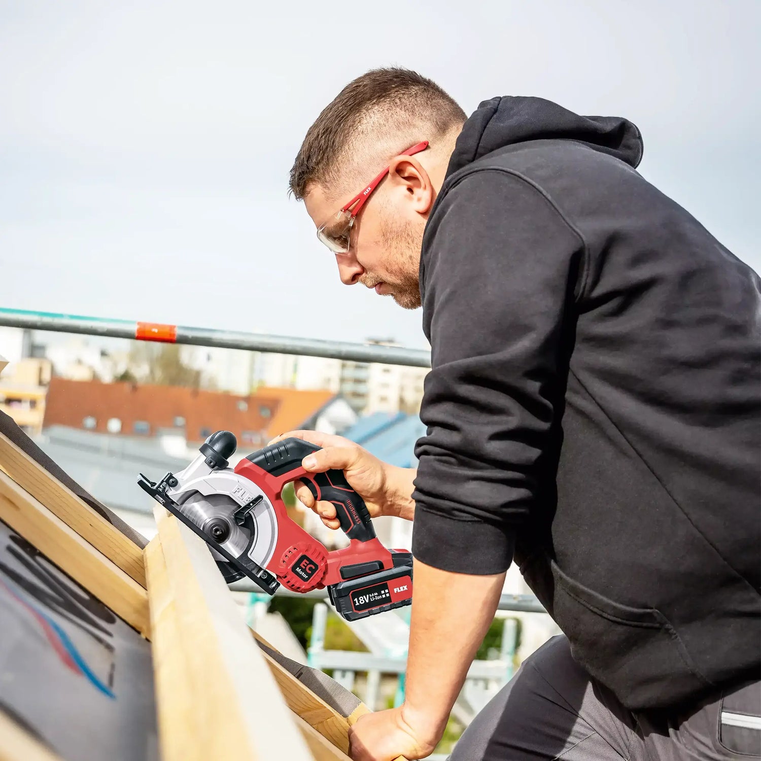 Sierra circular Flex CS 45 18.0-EC C 18V, gracias al diseño especial, la sierra está perfectamente equilibrada para trabajos a mano alzada.