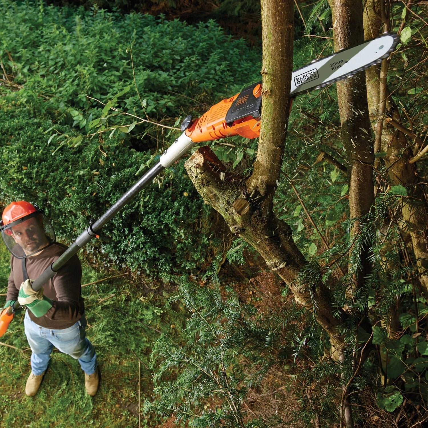 La sierra de podar Black+Decker PS7525-QS 800 W Es ideal para podar incluso las ramas más altas con la máxima facilidad de uso. El sistema de lubricación automática garantiza una eficiencia de corte continua.