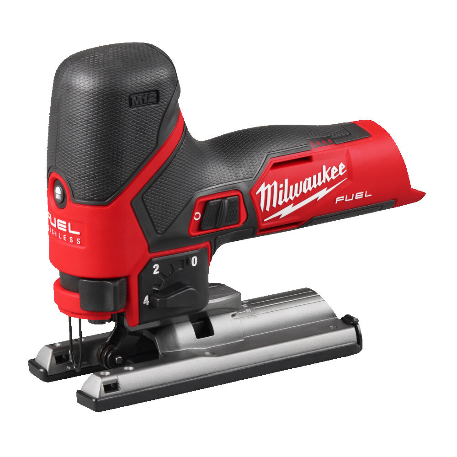 La sierra recíproca Milwaukee M12 FJS-0X 12 V Potencia sin concesiones, con autonomía para cortar hasta 24 metros de madera contrachapada de 19 mm.