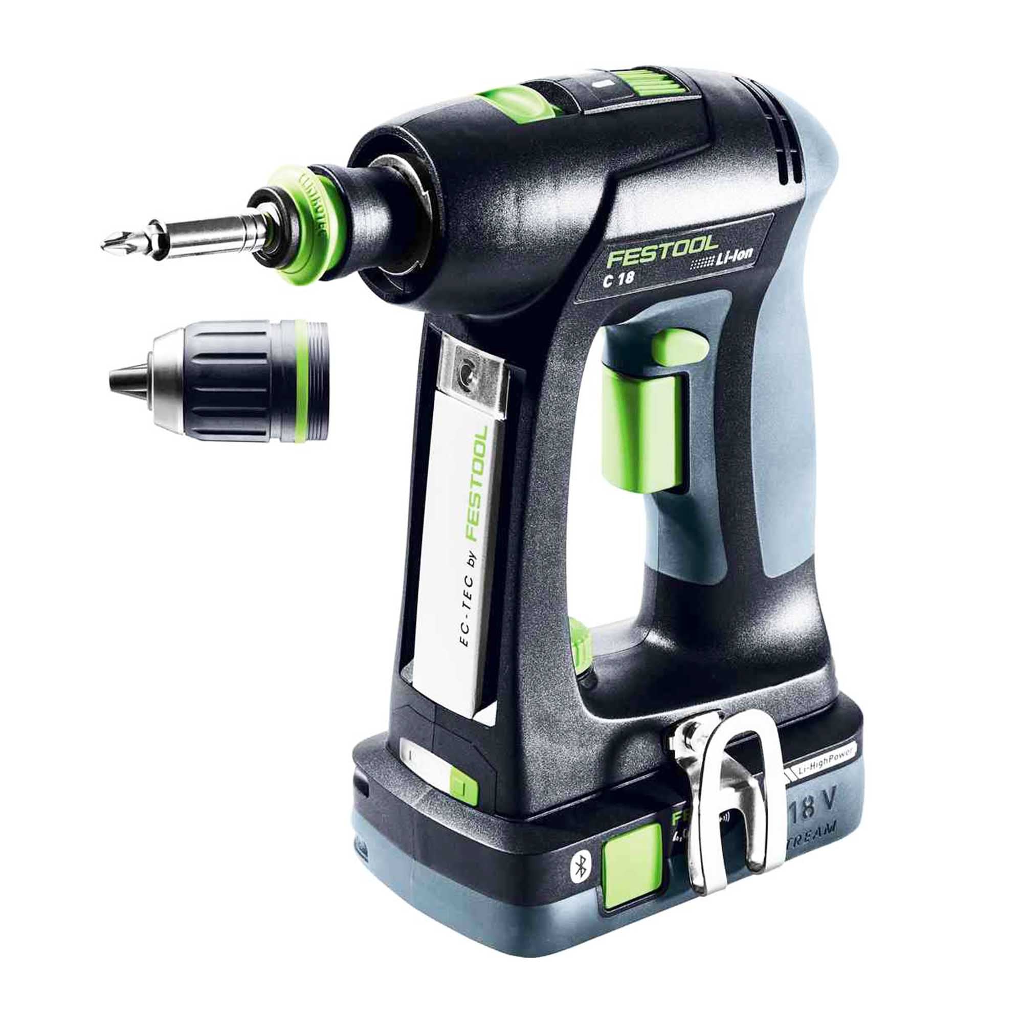 El taladro atornillador inalámbrico Festool C 18 HPC 4.0 I-Plus Ajuste de par totalmente electrónico.
