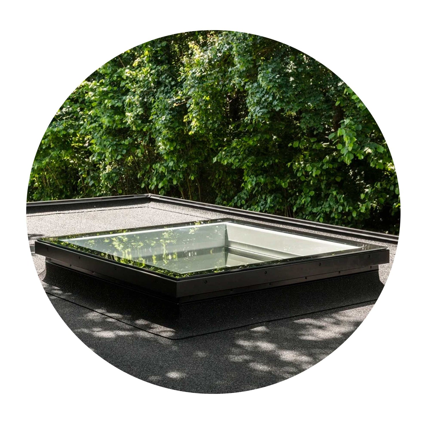 El vidrio plano templado VELUX para unidades CFU/CVU Es la solución perfecta para completar los acabados elegantes y eficientes de las ventanas de techo plano de nueva generación.